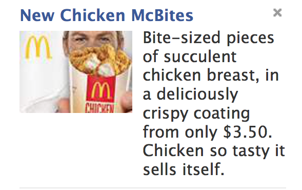 This Facebook ad is particularly heinous:i love so many things about this. chicken with a capital C. his attachment to his Chicken Friends (where does this come from?). he believes that his Chicken Friends love him. he proposes that Chicken life is as important as human life (!).